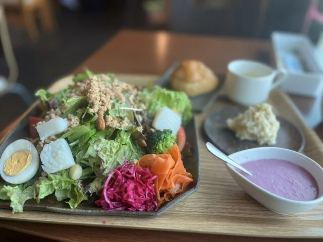 野菜がたっぷりで新鮮。ランチに最適です。毎週通っています。店員さんも親切で雰囲気も良い。