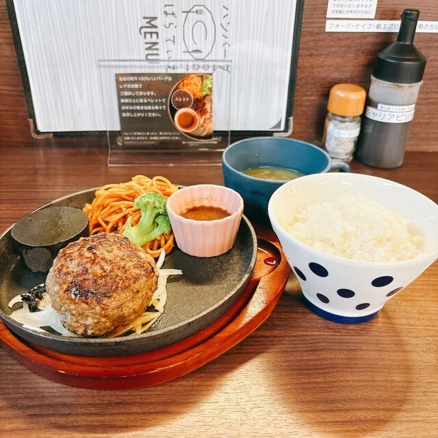 ハンバーグは肉汁たっぷりで美味しい。ただし待ち時間が長く、サービスがやや遅い印象を受けました。