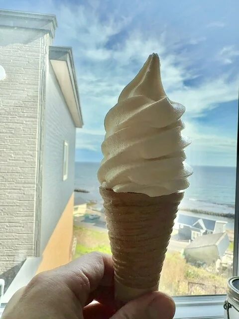 海を眺めながら食べられるソフトクリーム。バニラは無難な味で滑らか。夏本番にはもっと良さそうな立地です。ストローがハート形でかわいい。