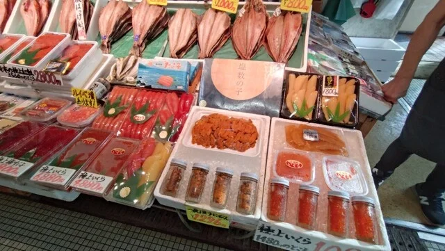 地元の物産店らしく、新鮮で質の良い海産物が豊富。土産選びに最適な場所。