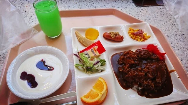 フェリーの船内レストラン。バイキング形式で選べるのが良い。ただし混雑時は品切れもある。