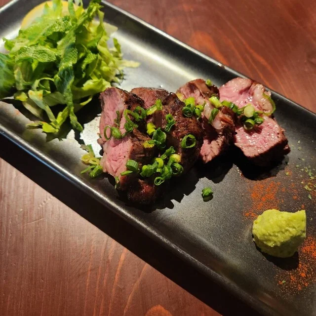 炭火焼き専門の居酒屋として、大沼牛や生ラム、SPFいわてポークなど、こだわりの食材を使った料理が楽しめます。道産豚の炭焼チャーシューは余分な脂を落としてあるのであっさりとした味わいで、何本でもいけそう。国産牛ハツはホースラディッシュとの相性が抜群で、独特の食感がクセになります。カウンター席もあるので一人飲みにも最適。Wi-Fiと電源も完備されているのでちょっとした作業もできそうです。