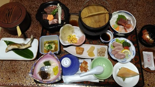 料理は地元産の山菜や川魚を中心に構成された会席スタイルで、季節感が強く表現されています。特に季節の会席料理は見た目の美しさと素材の味を活かした調理法が評価されていますが、メニューのバリエーションが限られ、価格帯もやや高めに設定されているため、コストパフォーマンスに対する声が分かれます。軽食として提供される金田一特製おにぎりや温泉卵は手軽に楽しめ、宿泊客の満足度向上に寄与しています。