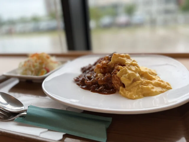 提供されるオムライスは卵の柔らかさとチキンのジューシーさがバランス良く調和しており、デミグラスハンバーグのソースは濃厚ながら甘みが抑えられている点が評価できる。カレーはスパイスが効いていて、野菜の食感も残っているため、全体的に味のクオリティは高いが、メニューのバリエーションはやや限定的である。