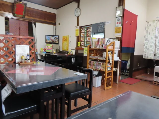 店舗はシンプルで落ち着いたインテリアが特徴です。木目調のテーブルと暖色系の照明が居心地の良さを演出しています。清掃は行き届いており、テーブルや床の汚れは目立ちません。ただし、壁に貼られたメニュー表が古く見える点があり、定期的な更新が求められます。全体的にリラックスできる空間で、家族連れやビジネス利用にも適しています。