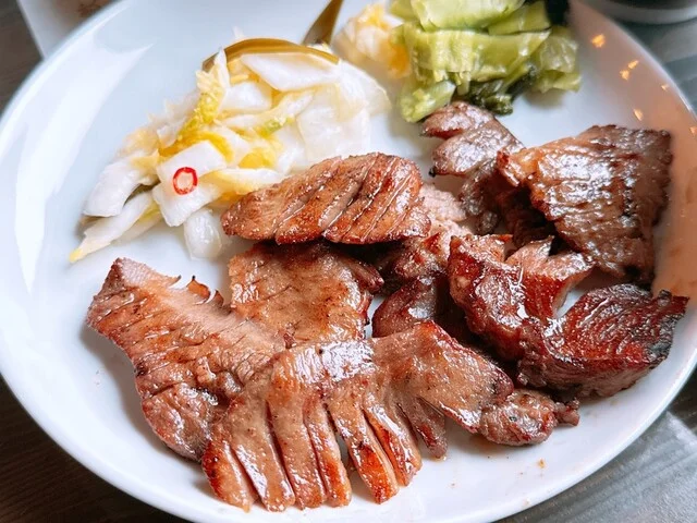 牛タン定食、焼肉盛合せ、カレー、テール汁など、牛タンを主軸としながらも多彩なメニュー展開がされています。牛タンの異なる調理法や組み合わせを通じて、この食材の魅力を深く理解できる構成になっており、リピーター向けの工夫も感じられます。