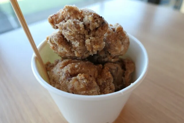フードコート内で手軽に食べられるからあげ。価格がリーズナブルで学生にも人気。揚げたてで美味しい。