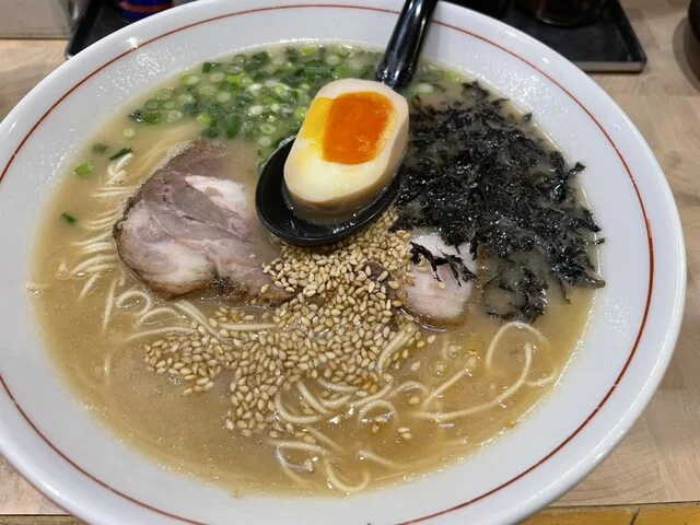 本店の博多長浜ラーメンは、濃厚なとんこつスープに独自ブレンドの細麺がよく絡み、深いコクとまろやかさが特徴です。チャーシューは脂身と赤身のバランスが取れ、食べ応えがあります。つけ麺のスープはラーメンよりやや濃いめで、麺の食感がしっかりしているため、満足感が高いです。全体的に味の安定感は高く、リピーターが多い点が強みです。